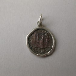 • römische Münze, gefasst in 925/1000 Silber, Rückseite