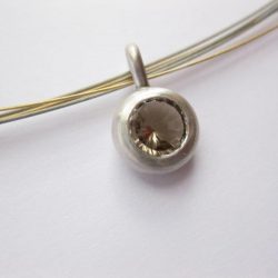 • 90 cm lange Drahtkette aus drei Strängen Juwelierdraht Silber & 2 Strängen Juwelierdraht vergoldet, Anhänger Rauchquarz Konkavschliff in 935/1000 Silber gefasst, JV137